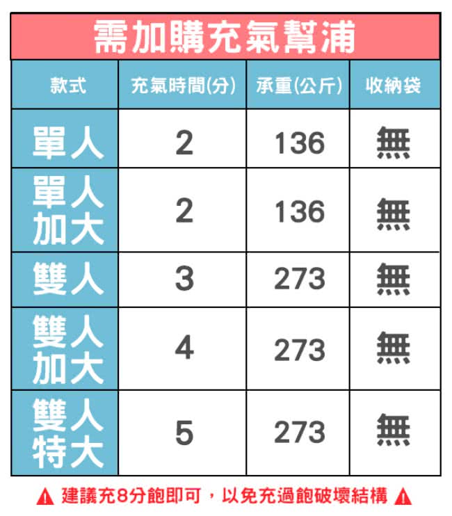 ◆ 保固:新品保固7天,商品若有瑕疵,請於購買7天內反映,一經充氣使用恕無法辦理退貨。